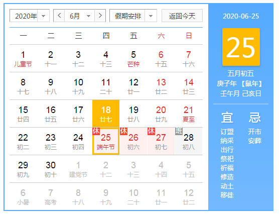 2020年端午節(jié)放假安排如下: