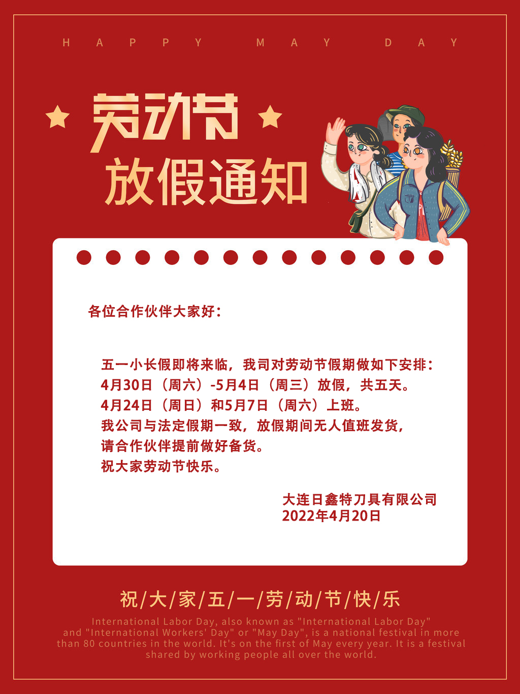 2022年勞動節(jié)放假通知